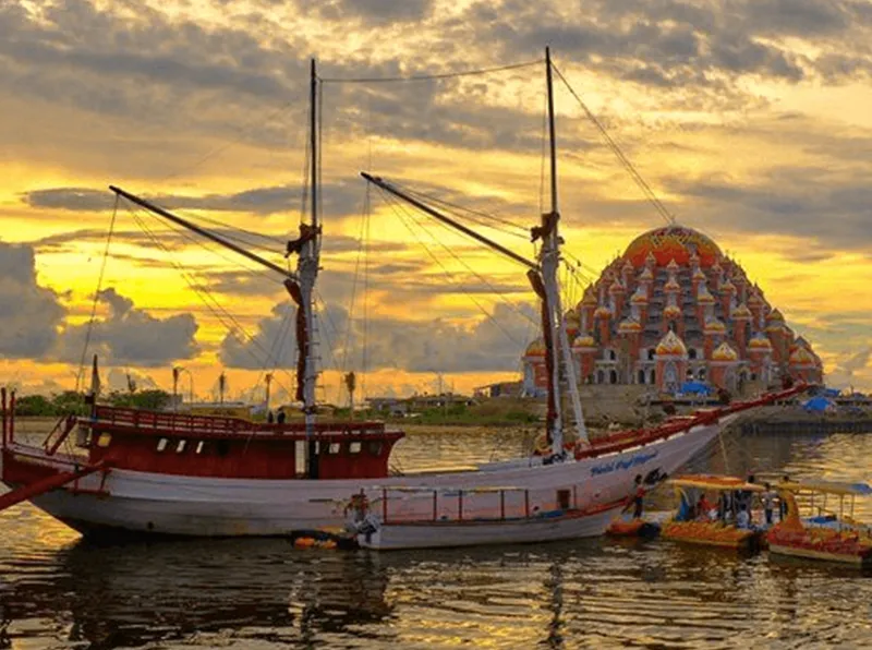 Visit Losari Beach, then board a Phinisi boat for a sunset cruise with Bugis-style sailing experience